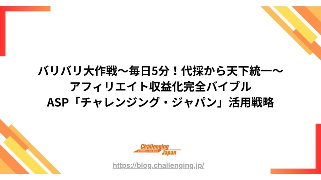 バリバリ大作戦~毎日5分!代採から天下統一~アフィリエイト収益化完全バイブル|ASP「チャレンジング・ジャパン」活用戦略