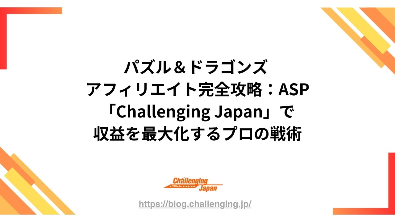 「パズル&ドラゴンズ(パズドラ)」のアフィリエイトで圧倒的な成果を上げたいブロガー・アフィリエイター向けに、SEO戦略と収益化の極意を徹底解説。パズルRPGの金字塔が持つ市場性、ターゲット層の深い検索意図の分析、CVR(成約率)を極限まで高めるライティング術をプロの視点で網羅しています。さらに、他社ASPを凌駕する高条件とゲーム特化の強みを誇る「Challenging Japan(チャレンジング・ジャパン)」への登録メリットを詳述。長期的な安定収益を築くためのデータ分析と運用フローを凝縮した、ゲームアフィリエイトの決定版ガイドです。