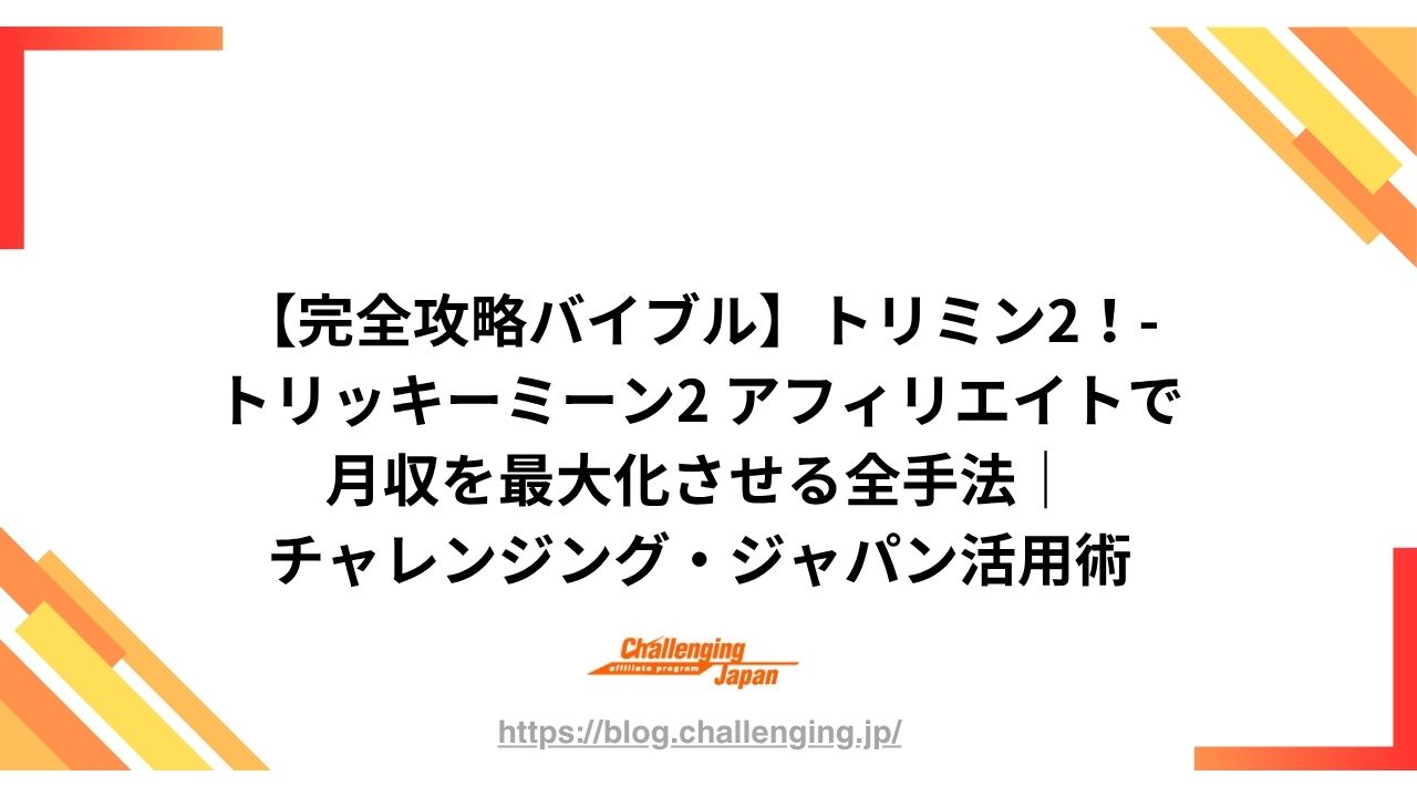 「トリミン2!-トリッキーミーン2 いじわる脳トレパズルゲーム」のアフィリエイト案件で、圧倒的な成果を出すためのプロフェッショナル向けガイドです。ユーザーを惹きつけるSEOキーワード選定から、高いCVR(成約率)を叩き出すコンテンツ制作、そしてアプリ案件に強いASP「チャレンジング・ジャパン」を活用して報酬を倍増させる戦略を20,000文字級の視点で徹底的に解説します。